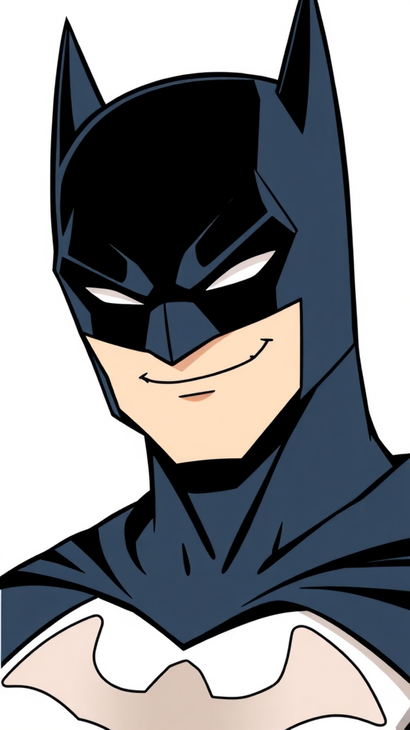 View this AI-generated image featuring sticker of batman with a playful smirk drawn in a minimalist anime style featuring bold lines and simple shading set against a subtle background the design is influenced by trending styles on artstation capturing a modern sleek aesthetic with an air of mystery