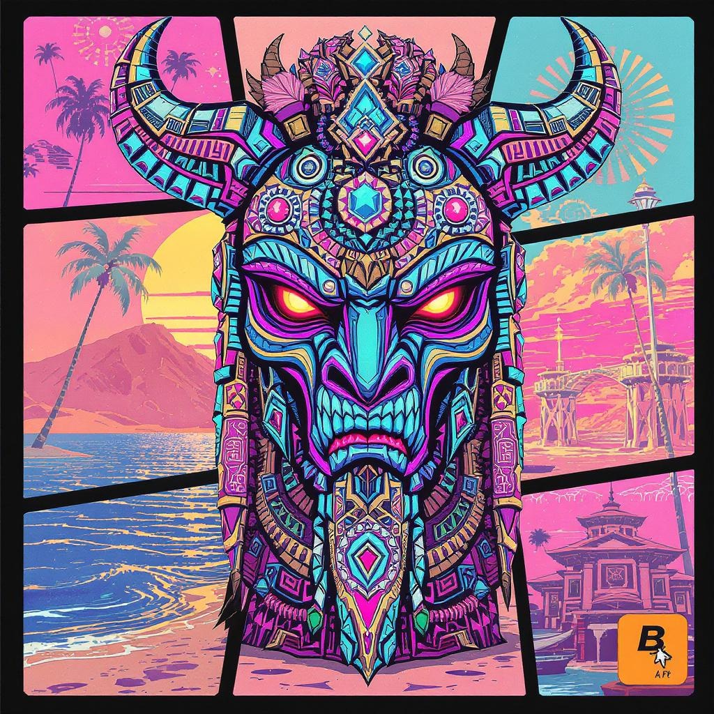 View this AI-generated image featuring totem animal in aztec tribal style featuring intricate greeble patterns and ornate fantasy elements inspired by heartstone and ankama this fanart merges the vibrant essence of gta5 cover art with a touch of official behance quality presented in hd influenced by