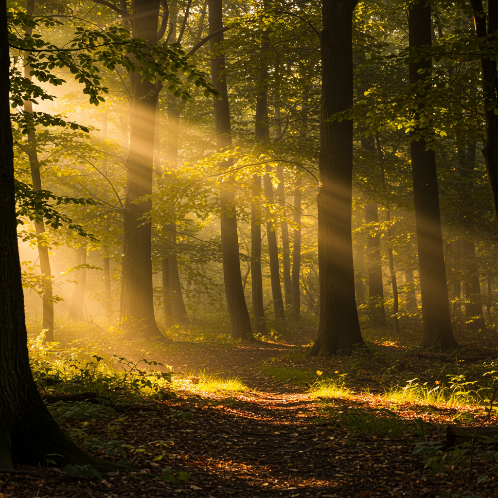 Wander through a forgotten forest where sunlight filters through ancient trees, casting golden patterns on the forest floor. In the heart of this enchanted woodland, discover a hidden grove where time seems to stand still, and the whispers of the past echo softly among the rustling leaves.