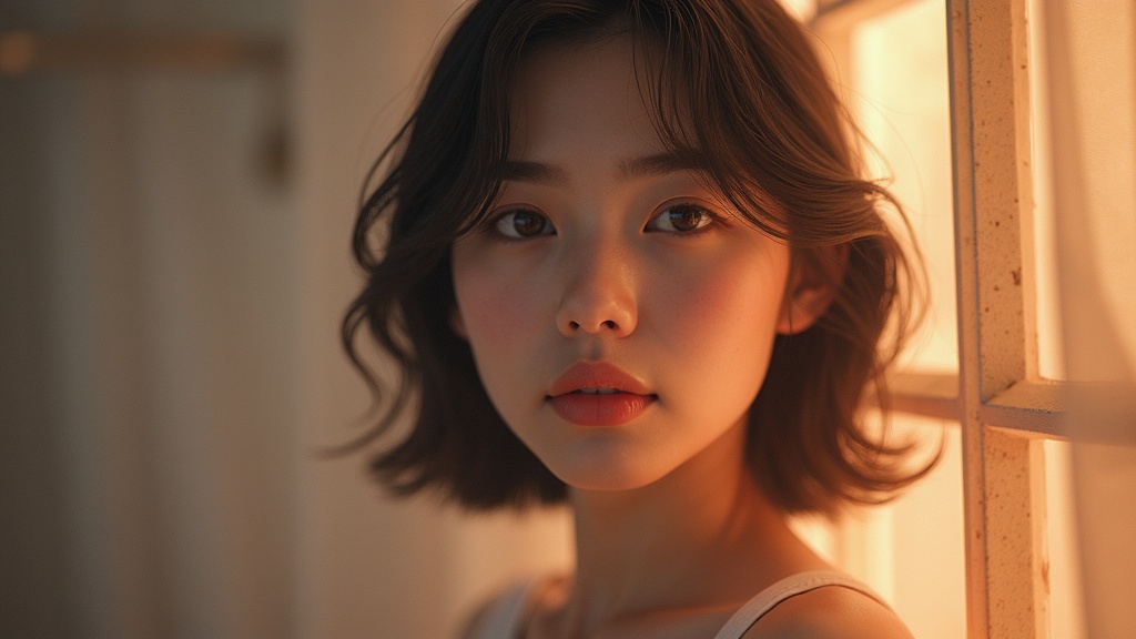 1 girl, stunning Korean woman, immersive and captivating backdrop, soft volumetric haze, enhanced global illumination, natural and ambient lighting, high detail RAW color photograph, ultra-realistic with intricate detail, seamless 8K CG wallpapers, physics-based rendering approach, high realism, high contrast hyperrealism, shot with an f1.6 lens for depth and richness, vivid and deep colors, lifelike and tangible textures, influenced by cinestill 800 film quality, capturing essence and beauty in a hyper-realistic and lifelike manner.