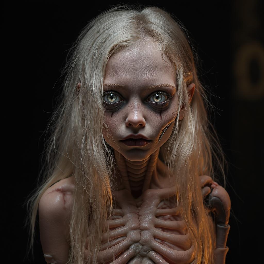 girl, texture, hyper detail, photorealism, immense fine detail, long flowing hair, gray eyes, dynamic light, ultra-high definition, high resolution, futuristic elements, natural texture, warm glow, cinematic feel, shifting halogen light, dramatic lighting, distorted anatomy, irregular features, missing parts, disjointed limbs, unnatural alignment, unsettling, disfigured, blurry effect, fragmented appearance, grotesque beauty.