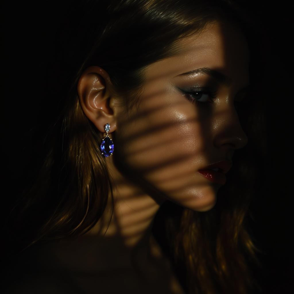Girl with a Sapphire Earring, dramatic chiaroscuro lighting, high detail RAW color image, a professional photo, highly realistic, ultra high resolution, 8K wallpapers, physics-based rendering, hyperrealism imagery, shot with an f1.6 lens, vibrant colors, lifelike textures, inspired by cinestill 800 film aesthetics, small creative enhancements while maintaining the core concept, emphasizing rich depth and contrast.