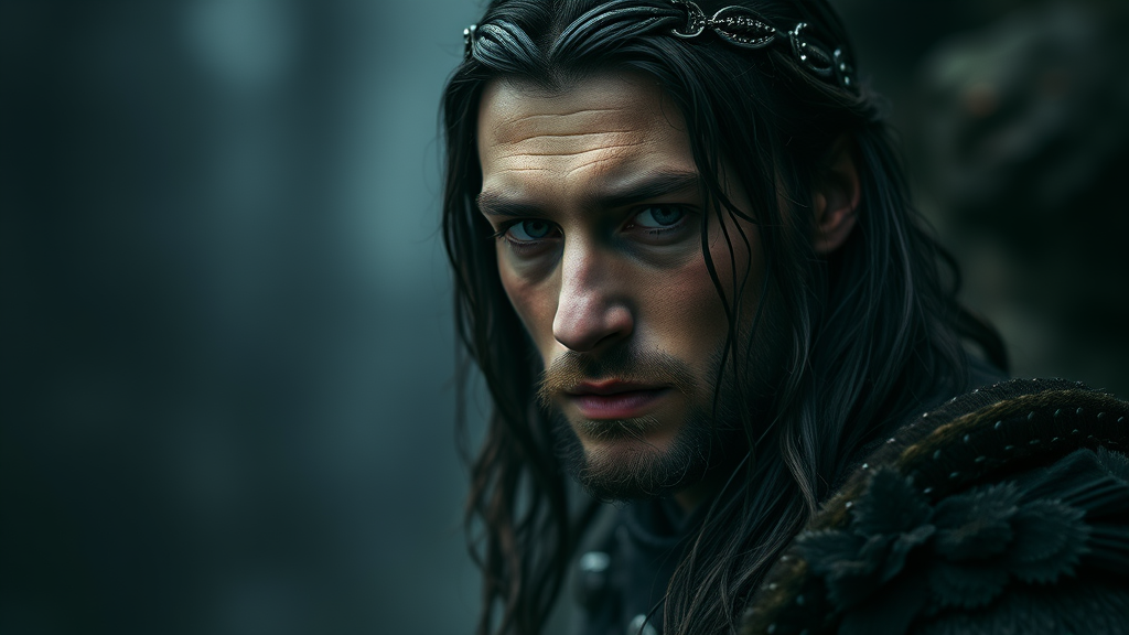 Glamour portrait of Aragorn, dark and morbide, exquisitely detailed, rendered in octane, with a moist, dense atmosphere, epic and dramatic ambiance, empty yet eerie, reminiscent of trail cam footage, photorealistic with hyperornate intricacies, inspired by Lord of the Rings, John Tolkien, captured by the lens of Irakli Nadar and Reylia Slaby, featuring an elongated aspect ratio with an intensity setting of 750.