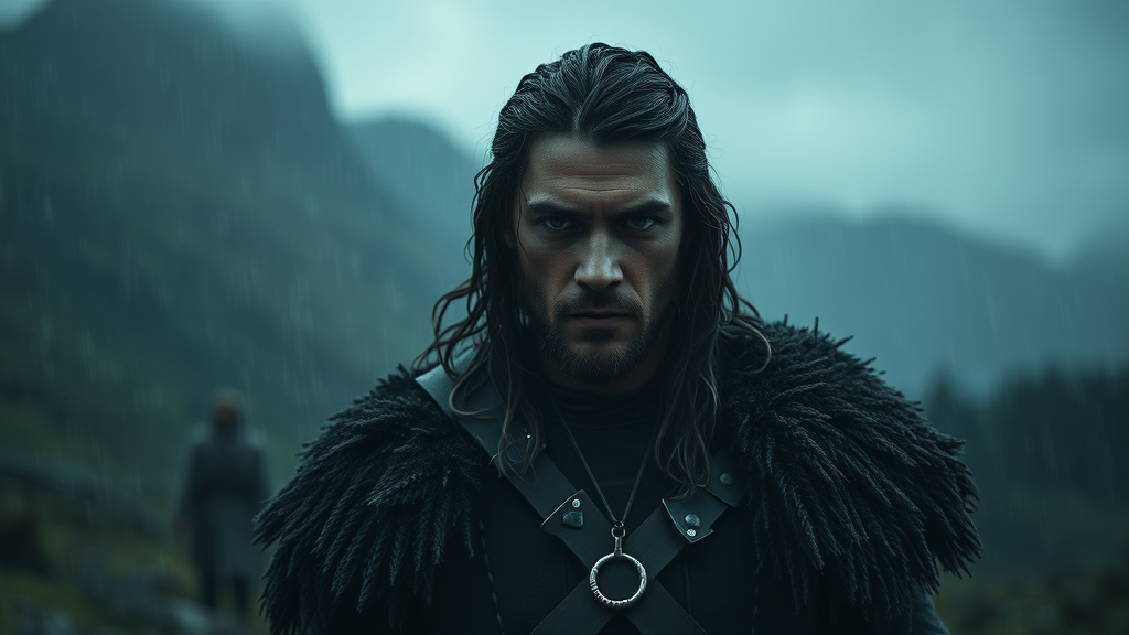 Glamour shot of Aragorn, brooding and intense, dark and highly detailed, rendered in octane, with a wet and dense atmosphere, capturing an epic and dramatic essence, haunting and isolated, eerie like old trail cam footage, photorealistic with hyper intricate details, inspired by Lord of the Rings, J.R.R. Tolkien's world, envisioned through the eyes of Irakli Nadar and Reylia Slaby, showcasing the tension of a lone warrior in an enigmatic landscape, --ar 1:2 --q 2 --v 5 --s 750.