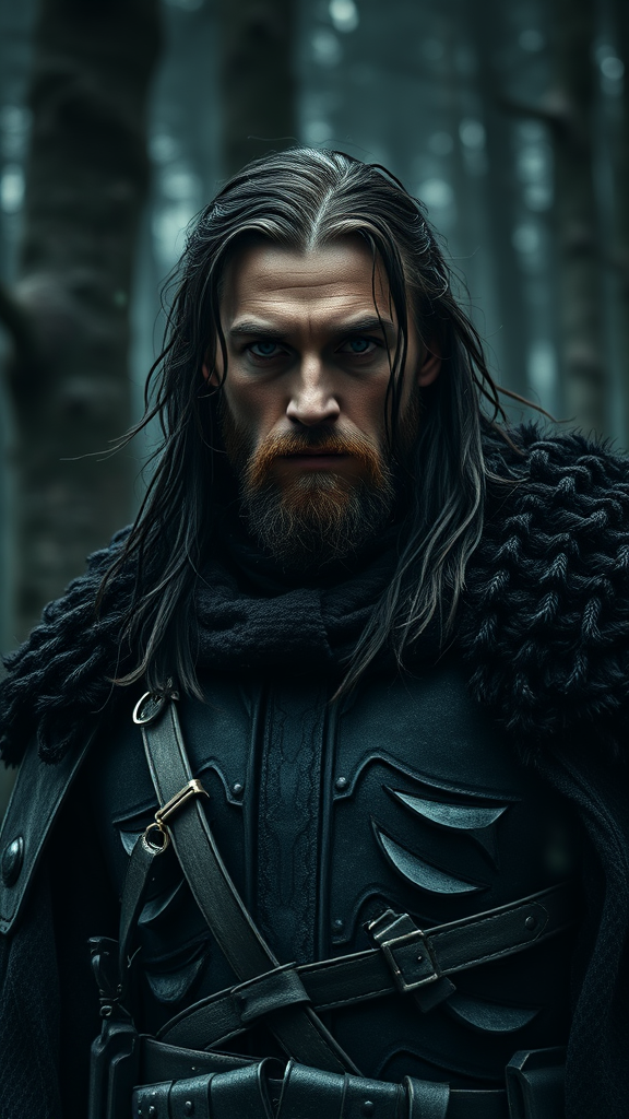 Glamour shot of Aragorn, somber, shadowy, intricately detailed, rendered in high fidelity, damp, thick with atmosphere, epic, theatrical, isolated, eerie, resembling trail cam footage, lifelike, richly detailed, Tolkien-inspired, photographed in the style of Irakli Nadar and Reylia Slaby, tall and imposing, dark intricacies in armor and expression, capturing the mystery and depth of Middle-earth's rugged landscapes, subtle hints of danger and heroism in his gaze, surrounded by the ancient forest of Fangorn, evoking the mystique of a forgotten age.