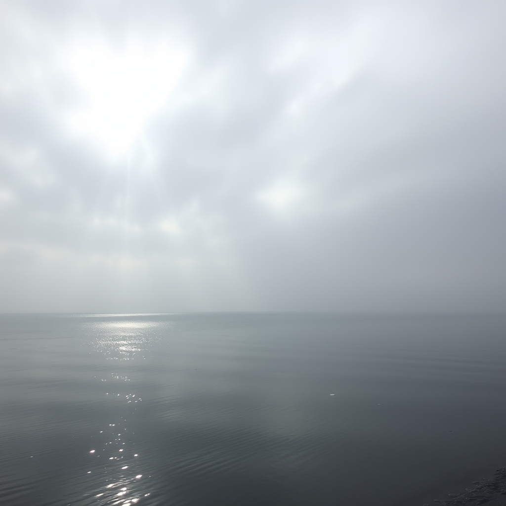 Glide across a chilly lake under a blanket of clouds, with a single sunbeam breaking through the gray to dance on the water's surface.