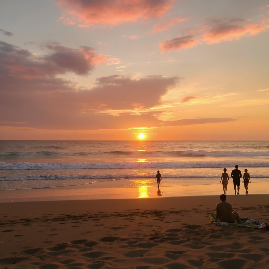 Golden Horizon: Visit the beach in the early evening to photograph the captivating outlines of beachgoers against the glowing hues of the descending sun.