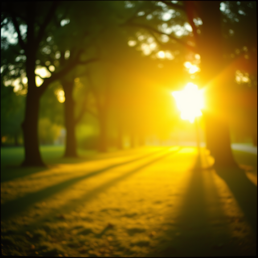 Golden Hour Park Scene, soft focus background, cinematic grain, vintage 35mm film style, Kodak Ektar, sun flare, cozy and rich tones, bright and inviting atmosphere, aspect ratio 4:5