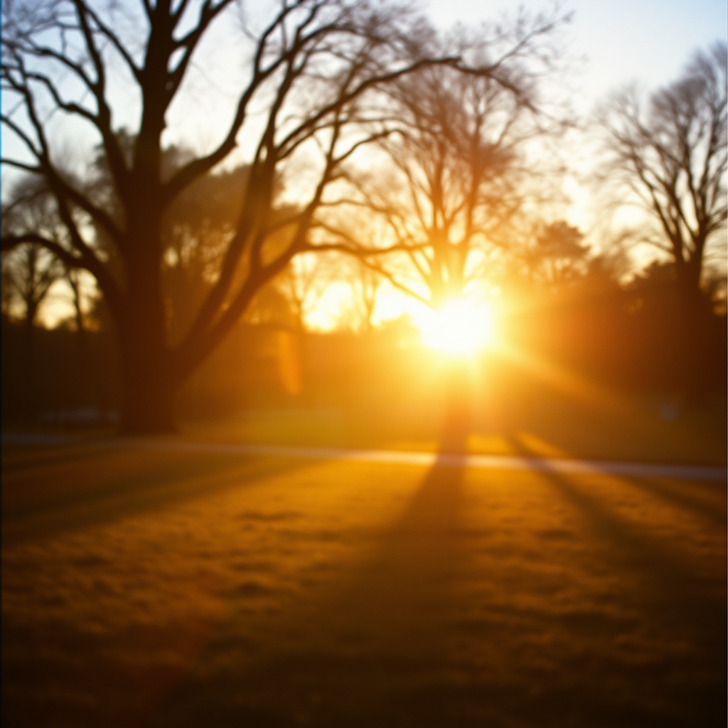 Golden Hour Park Scene, soft focus, Film Texture, 35mm, Fujifilm Pro 400H, Sunlight Glare, Cozy Color Scheme, Bright Atmosphere --ar 4:5
