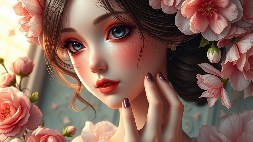 Gorgeous anime girl thickly illustrated in acrylic, inspired by rococo art with flower decorations displaying a beautiful balance of chiaroscuro and holy cinematic rim lighting. The scene captures an iridescent reflection reminiscent of an oil painting, blending classical elegance with modern 3D CGI elements. The character resembles an exquisite doll, rendered in high definition with a slight touch of surrealism. Her face and hands are gracefully detailed, embodying a harmonious blend of colors and light, bringing the artwork to life. Despite the ultra-realistic feel, there's a subtle presence of imperfections like jpeg artifacts that add a unique texture, echoing the charm of low-resolution digital elements creatively integrated into the piece. The artwork encapsulates a sense of surreal and whimsical beauty while maintaining its core inspiration.