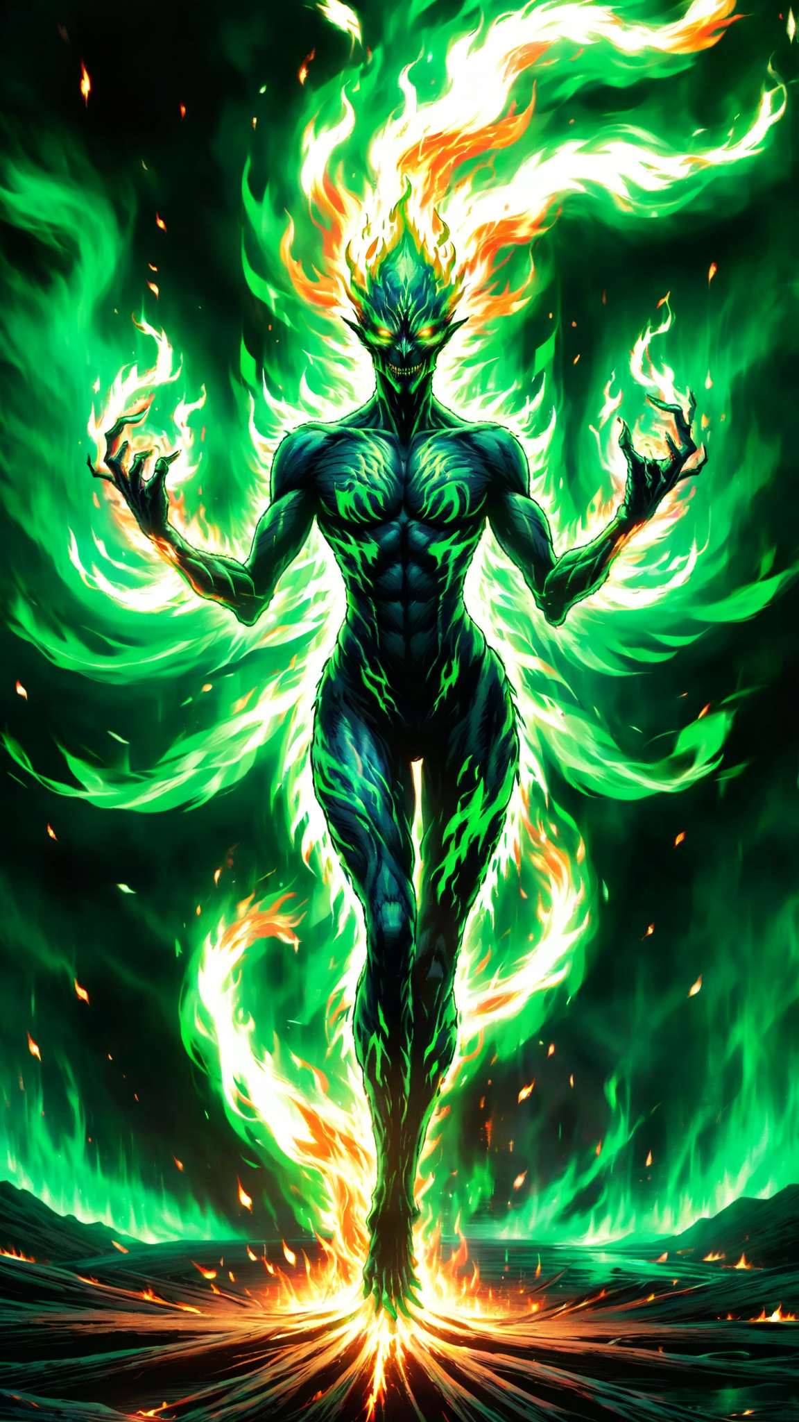 Green fire, elemental force of nature. A fire spirit that takes the form of rapidly spinning green flames. Other times, it is spinning green sparks. Seldomly, you csn see a humanoid figure made of flames or spsrks within the whirling energy; the humanoid form is created by them. It has no actual form of its own. Faerie without a form.