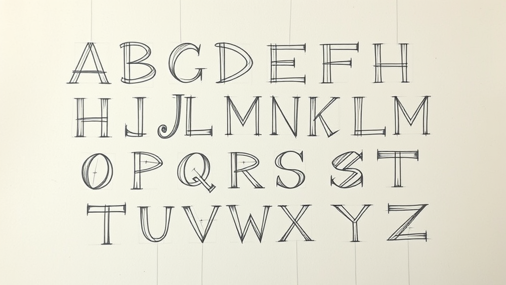 "Handcrafted alphabet sketch on paper, each letter uniquely styled and visually intriguing, creating an artistic and cohesive list, with subtle variations and creative twists keeping the core identity intact."