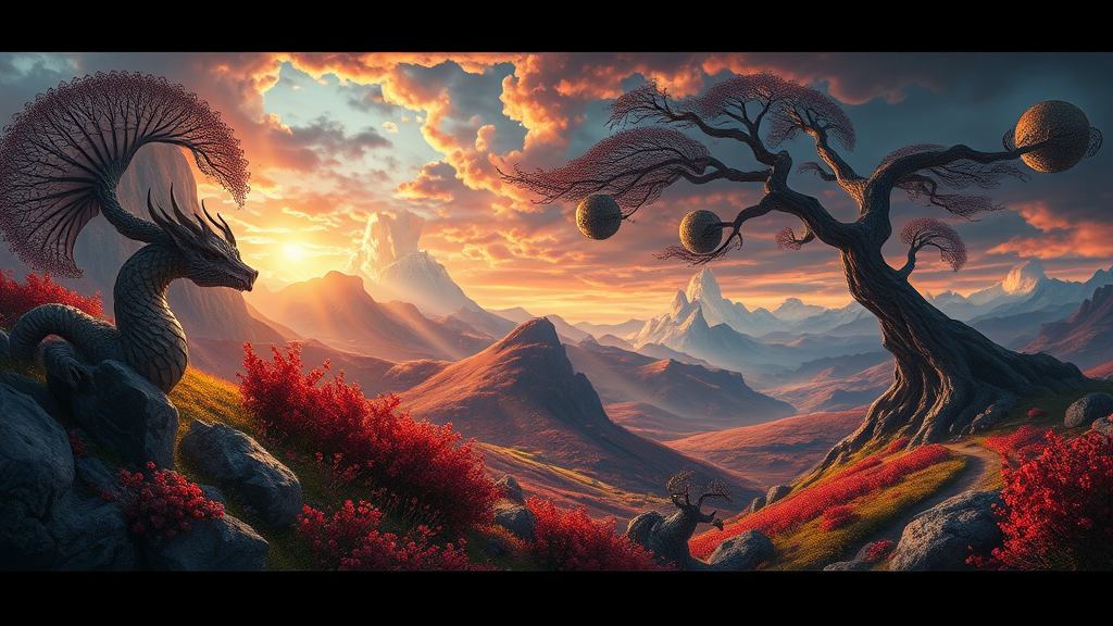Heico in a vibrant landscape, detailed textures and rich colors, aspect ratio of 9:18, emphasis on depth and dynamic elements, harmony and contrast weaving together to create a visually striking and immersive scene, subtle play of light and shadows adding a mystical aura.