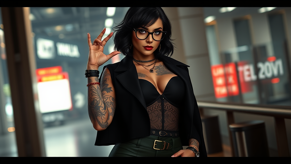 Here is a revised prompt that builds upon the original while introducing some creative modifications: Velma Dinkley in a sultry, high-fashion twist on her iconic mystery-solving attire, posing in a sleek, minimalist urban setting, with a bold, curvy figure, adorned with intricate, eye-catching tattoos, showcasing her confident, intelligent, and seductive side, rendered in ultra-realistic, vibrant UHD style reminiscent of Niji3D's art, with a mix of soft focus and sharp detail, featuring multiple, dynamic poses, close-ups, and candid expressions, possibly incorporating a creative, expressive extra hand or gesture, and accented with subtle, artistic JPEG artifacts and watermarks.