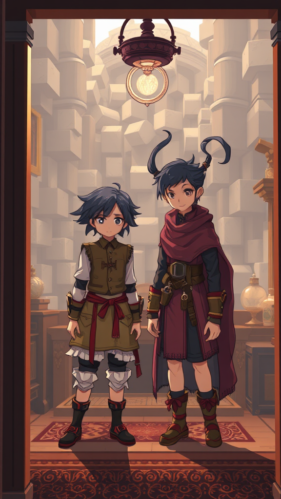 Here's a revised version of the prompt, inspired by your initial idea: Craft a scene with low resolution and hyperdetailed pixel art in a fantasy art style, capturing the essence of retro and clean art similar to the Octopath Traveler art direction. Use a 100 mm lens to create a cinematic shot with a perfect angle, featuring an interior background with pixel characters and a voxel background. Ensure high contrast and high definition for a vivid UHD experience. Incorporate creative, whimsical elements such as warped, exaggerated features and surreal mutations, giving characters extra limbs and unusual proportions. Set the scene with more than two figures, including a character with elongated or fused features, creating a sense of dreamlike distortion within a framed picture. The atmosphere should be both peculiar and evocative, blending classic retro aesthetics with a modern, high-definition twist.
