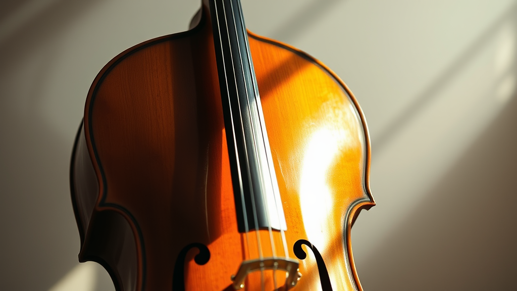 High quality image of a cello bathed in soft white light, captured with a Leica 50mm lens at f1.4, featuring a slight touch of artistic shadow play to enhance its contours.