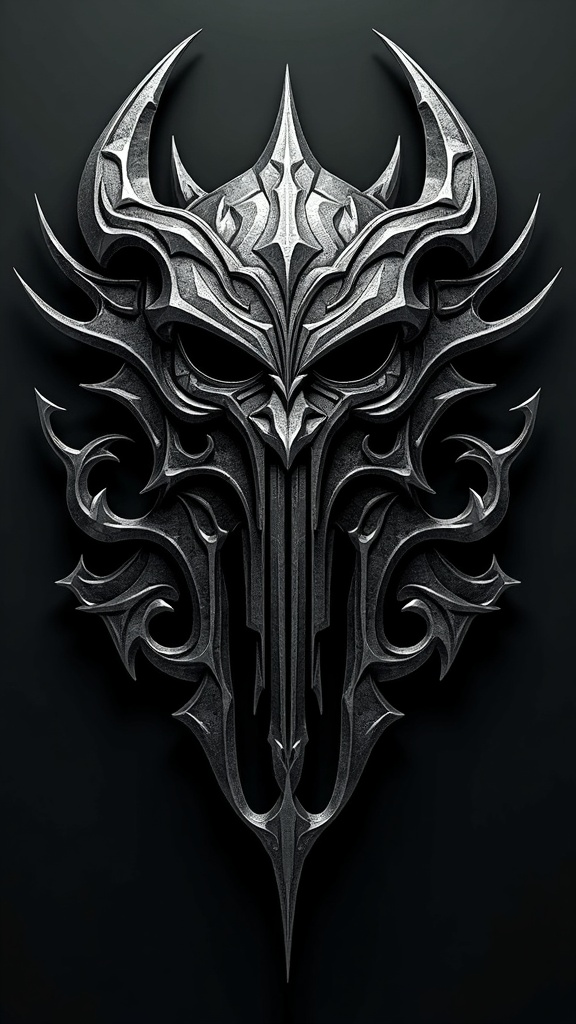 View this AI-generated image featuring high quality logo of fierce warriors featuring intricate detailing crafted in black metal emphasizing geometric patterns and symmetrical design rendered in realistic style with ray tracing effects in striking black and white optimized for vector logo design at