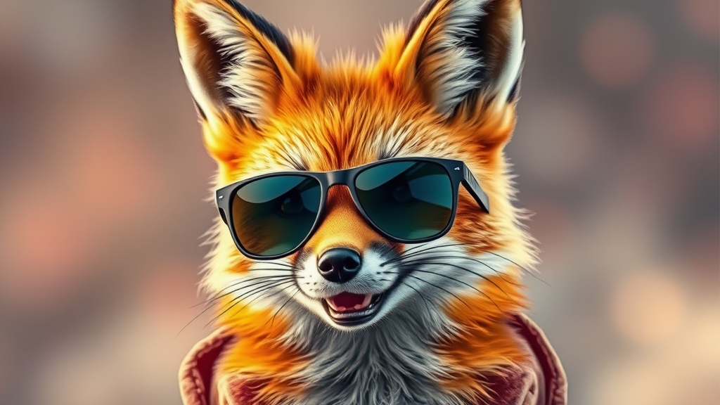 Highly detailed matte painting stylized portrait of an anthropomorphic, adventurous and cheerful fox wearing sleek aviator sunglasses, radiating a cool and relaxed vibe. This fox character, with its fur textured in rich, golden hues, exudes a rugged yet charming demeanor. The background features a smooth, dreamy blur with a vibrant bokeh effect, emphasizing the fox's captivating expression. The composition captures the essence of a confident, happy-go-lucky animal person, perfectly balancing realism and stylized artistry.