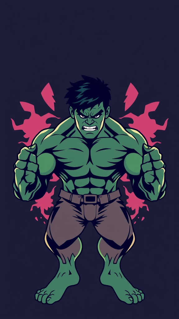 Hulk-inspired symmetrical illustration, bold color palette, clean lines, modern flat icon style with dynamic poses and subtle texture details.