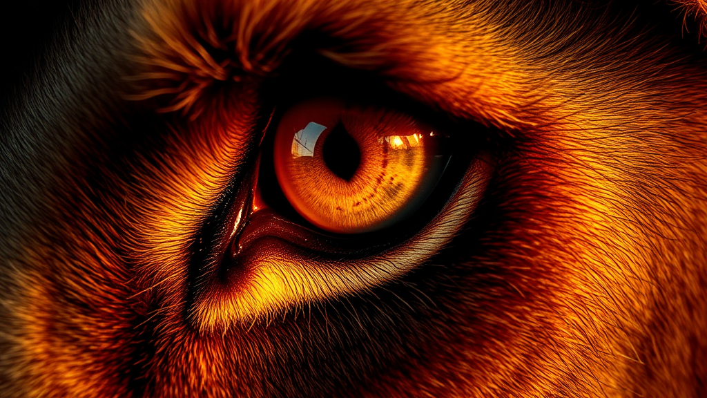 Hyper-detailed macro photography close-up of a lioness's eye, intense, fiery, seething with energy, vividly expressive, lifelike, cinematic hyperrealism, intricate detailing, 4K dimension, stunning realism, dynamic lighting, superior detail resolution, exceptionally realistic photography lighting.
