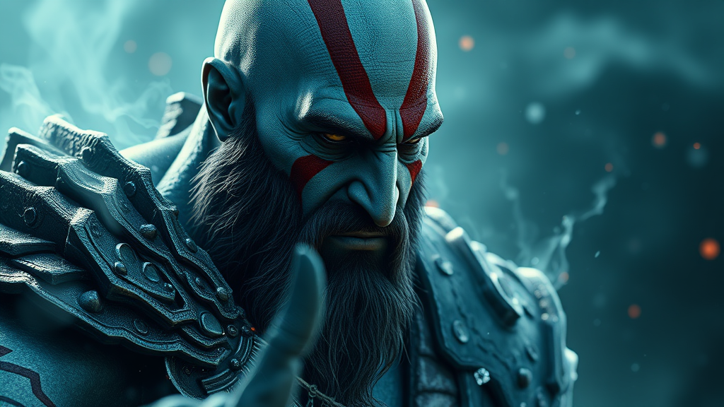 Hyper realistic God of War character design, Kratos, cosmic sorcerer, ethereal mist, photorealistic, rendered with octane, unreal engine 5, 8k resolution, exquisitely detailed, volumetric lighting, high dynamic range, aspect ratio 9:16.