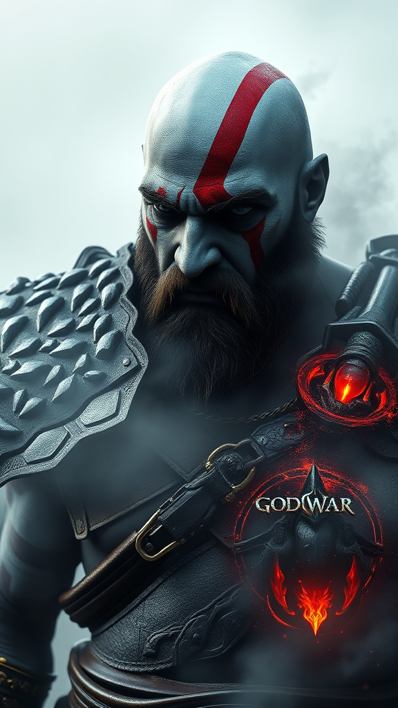 Hyper-realistic God of War character reimagined as Kratos, a mystical void arcanist enveloped in ethereal mist, photorealistic art style, rendered in stunning octane quality, utilizing the power of Unreal Engine 5, 8k resolution, exceptionally detailed textures and features, dynamic volumetric lighting creating a haunting atmosphere, HDR enhanced visuals, set in a vertical aspect ratio of 9:16.