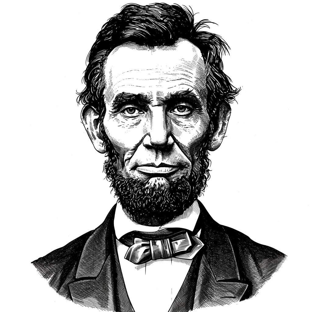 hyper-realistic ink portrait of abraham lincoln with subtle artistic flair, on a pristine white background, showcasing intricate details and creative emphasis on his iconic features