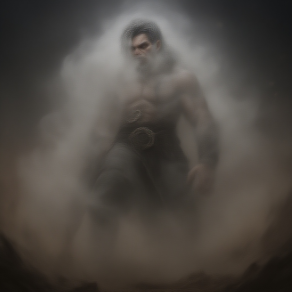 hyper realistic one piece character design luffy engulfed in swirling mist photorealistic octane render unreal engine 5 8k resolution hyper detailed volumetric lighting hdr dramatic scene of intense combat set against a backdrop of chaos and conflict subtle creative elements like torn clothing dynamic motion blur and dust particles in the air capturing the raw energy and tension of battle vibrant colors and lifelike textures enhancing the depth and realism of the chaotic environment
