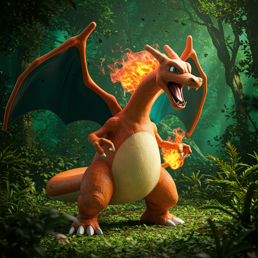Hyper-realistic Pokémon, lifelike photo, intricate details, striking contrast and shadows, vibrant colors, enhanced textures, dynamic composition, nature-inspired setting.