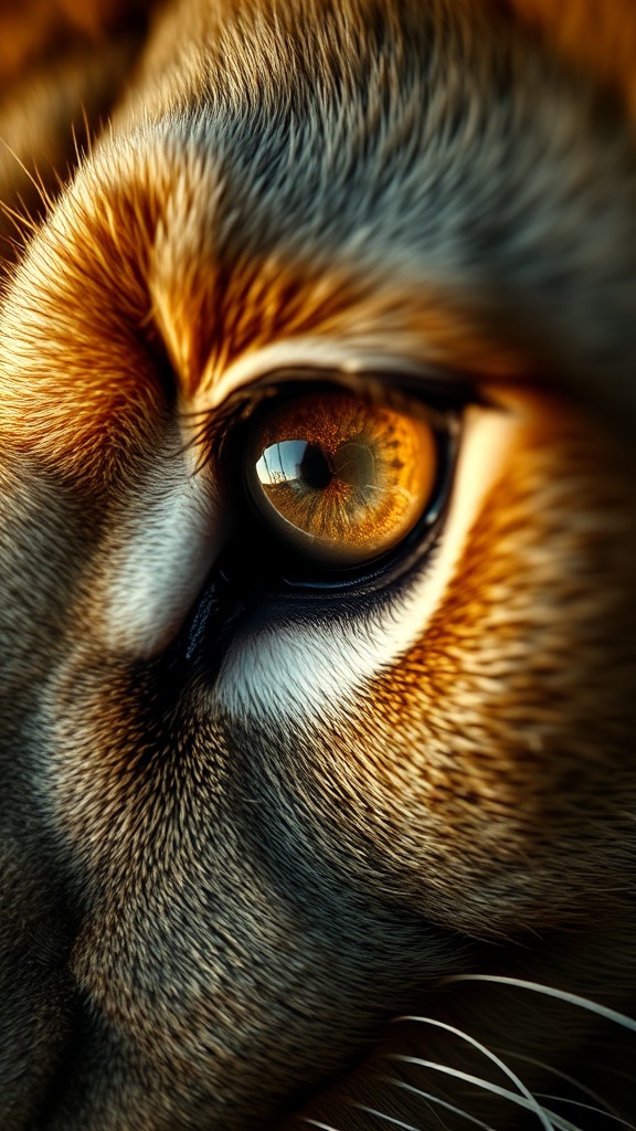 View this AI-generated image featuring hypermacro photograph capturing the ultra close up of a lion s eye exuding an intense ferocity and raw power with a gaze filled with rage and deep emotion incredibly lifelike and intricate showcasing extreme detail and realism the scene is illuminated with cine