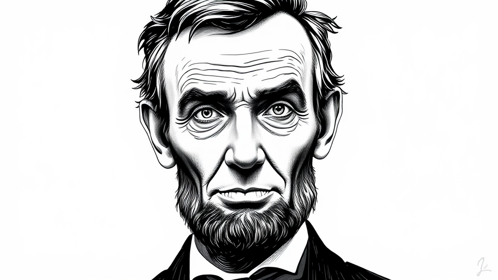hyperrealistic ink portrait, abraham lincoln, detailed illustration on minimalist white backdrop
