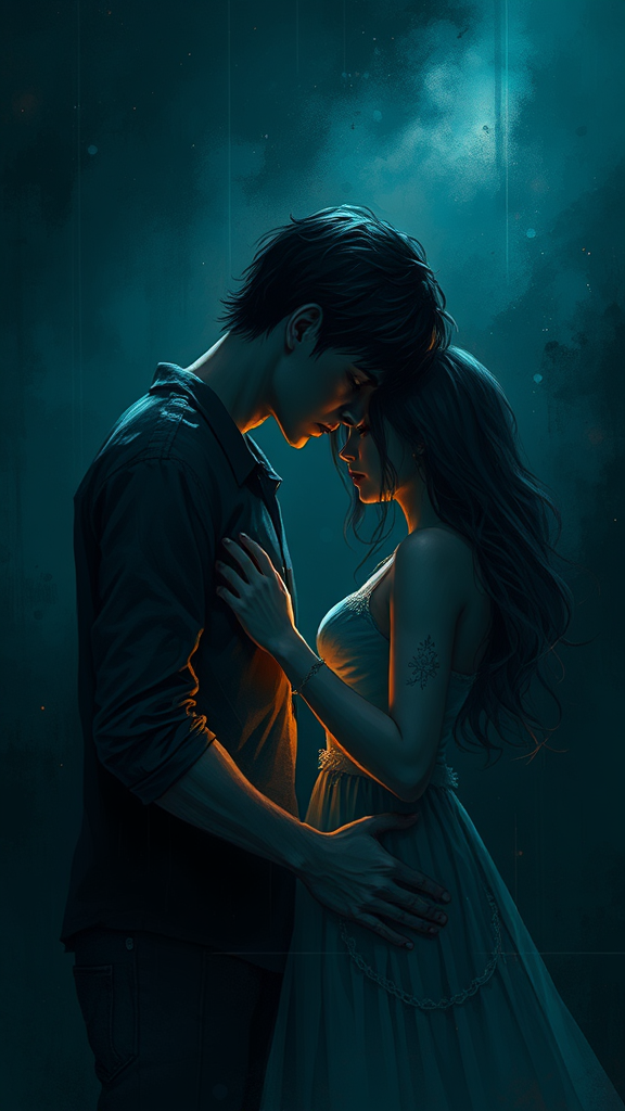 I just wanted to love you and nothing more, a heartbreaking composition with nostalgic illustration, digital painting featuring dramatic, gloomy, and emotionally profound themes. Volumetric lighting casts intense and brooding dark tones, leaving an indelible and haunting impression on the psyche. This unforgettable masterpiece is of high quality, with an emphasis on creating a vivid yet dramatic atmosphere. The artwork captures an expressive narrative, steering clear of technical flaws like jpeg artifacts, duplications, or mutated forms. It maintains natural anatomy and proportions, avoiding issues like poorly drawn features, deformations, or missing limbs. The scene is free of distractions such as signatures or watermarks, focusing solely on the powerful emotional impact of love and longing.
