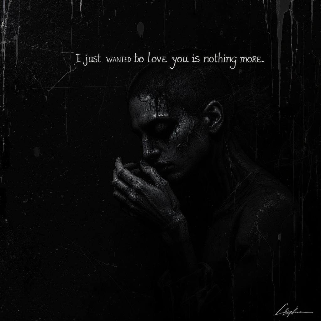 I just wanted to love you and nothing more, evoking a heart-wrenching emotional depth, nostalgic digital illustration with a dramatic and somber mood, profoundly moving and atmospheric with intense and brooding dark hues. The use of volumetric lighting creates a haunting and unforgettable impression on the psyche, a masterpiece of high quality. Text appears in the worst quality, marred by jpeg artifacts, rendering it ugly and duplicate, while the morbid composition hints at a sense of mutilation, including poorly depicted hands and faces. Features exhibit mutation, with figures appearing blurry and dehydrated, possessing bad anatomy and proportions. Extra and missing limbs, alongside cloned and disfigured faces, showcase gross and malformed proportions. Hands and features are poorly drawn, with distortions such as long necks. Elements hint at cut-off signatures, watermarks, or logos, with anatomy remaining distorted and imperfect.