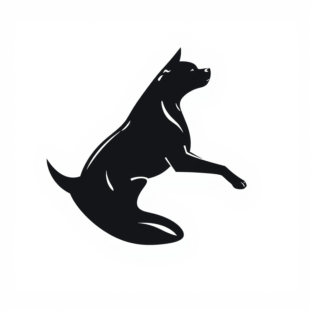 Iconic emblem of a canine, sleek black silhouette, set against a clean white backdrop with subtle creative enhancements and dynamic line work.