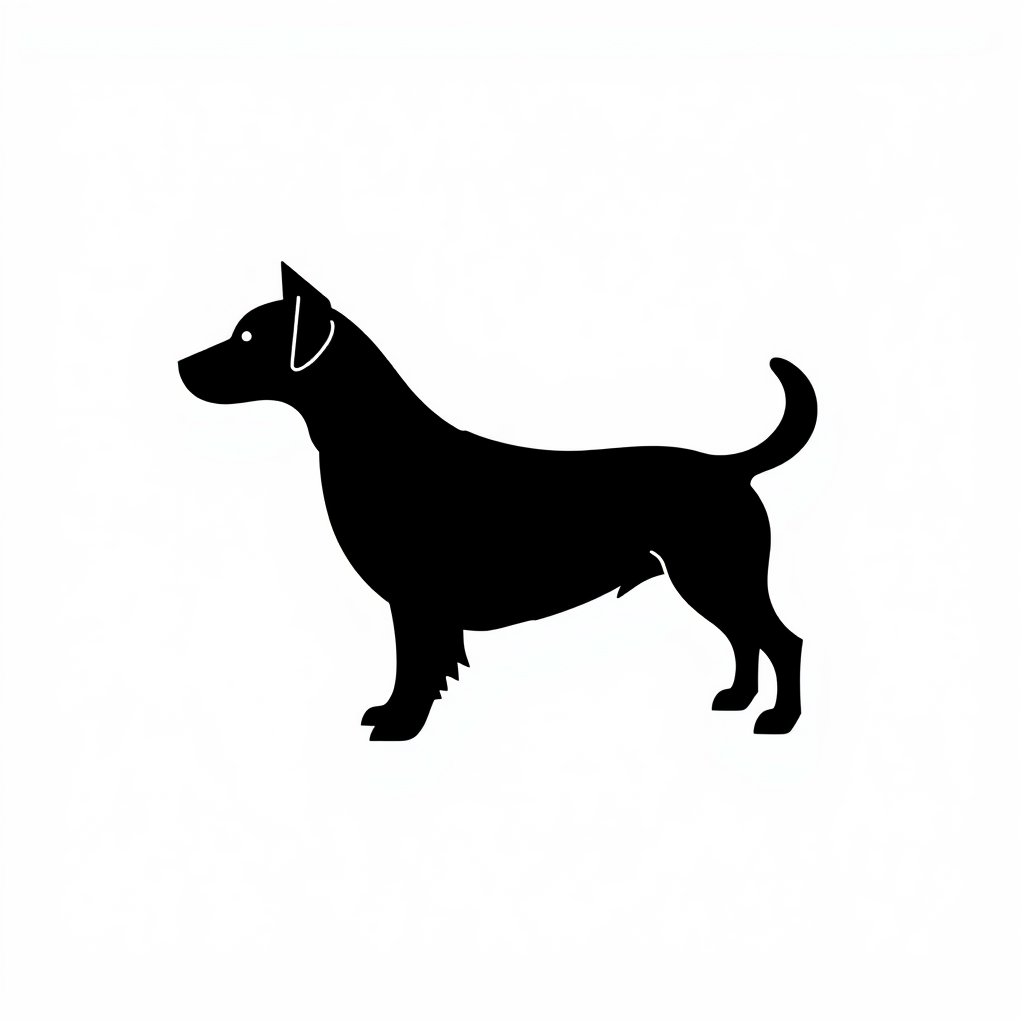 Iconic emblem of a dog, sleek black silhouette, set against a white backdrop, subtly enhanced with artistic flair while retaining its core essence.