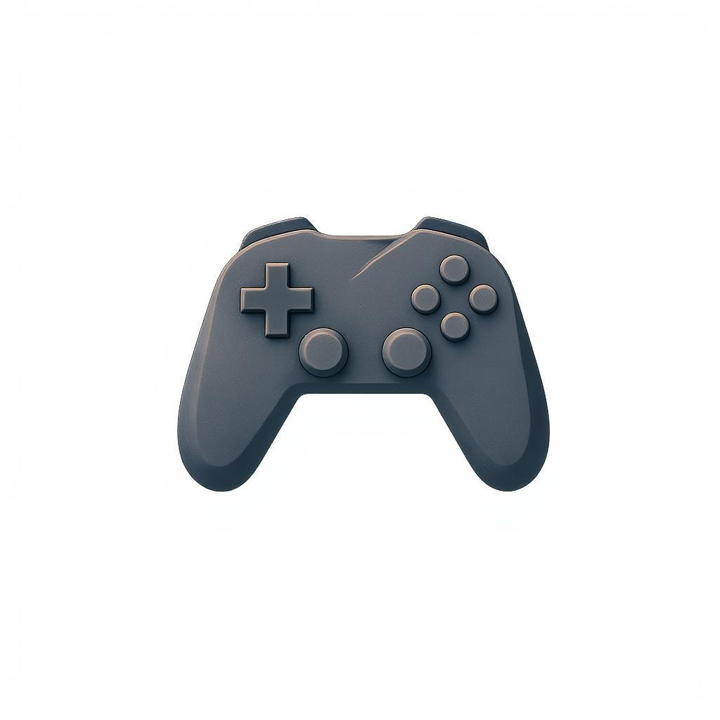 Iconic game controller logo vector in minimalist sculpture style, featuring dark gray and navy tones, with a precise and thoughtful perspective. The design embodies elements of engineering and construction, with a tactile quality reminiscent of Henry Moore's works. The composition exudes a sense of balance and fluidity, capturing the essence of modern design aesthetics while maintaining the core concept of simplicity and elegance.