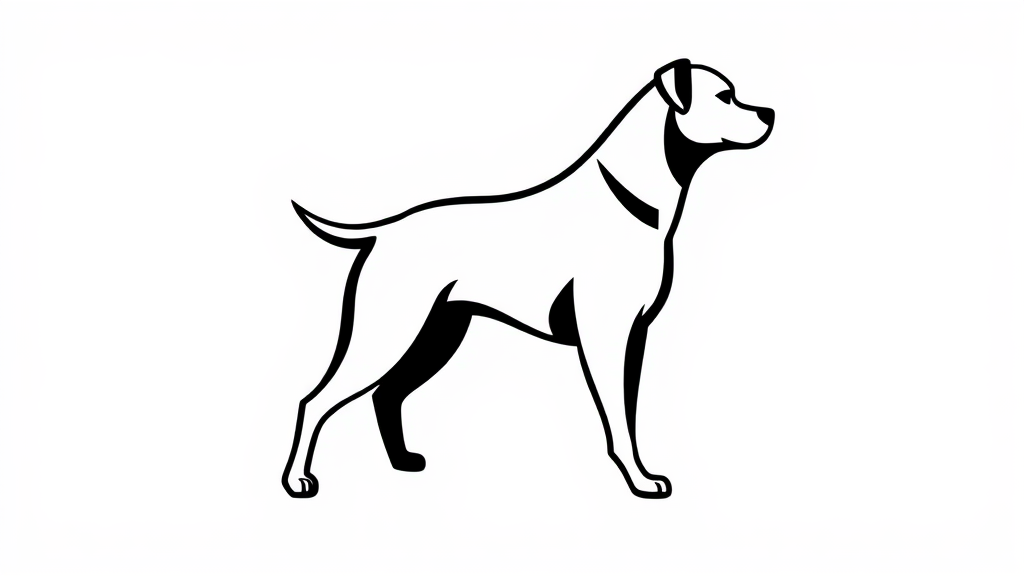 Iconic logo of a stylized dog, sleek black vector art, set against a clean white background, incorporating subtle geometric elements for modern flair.