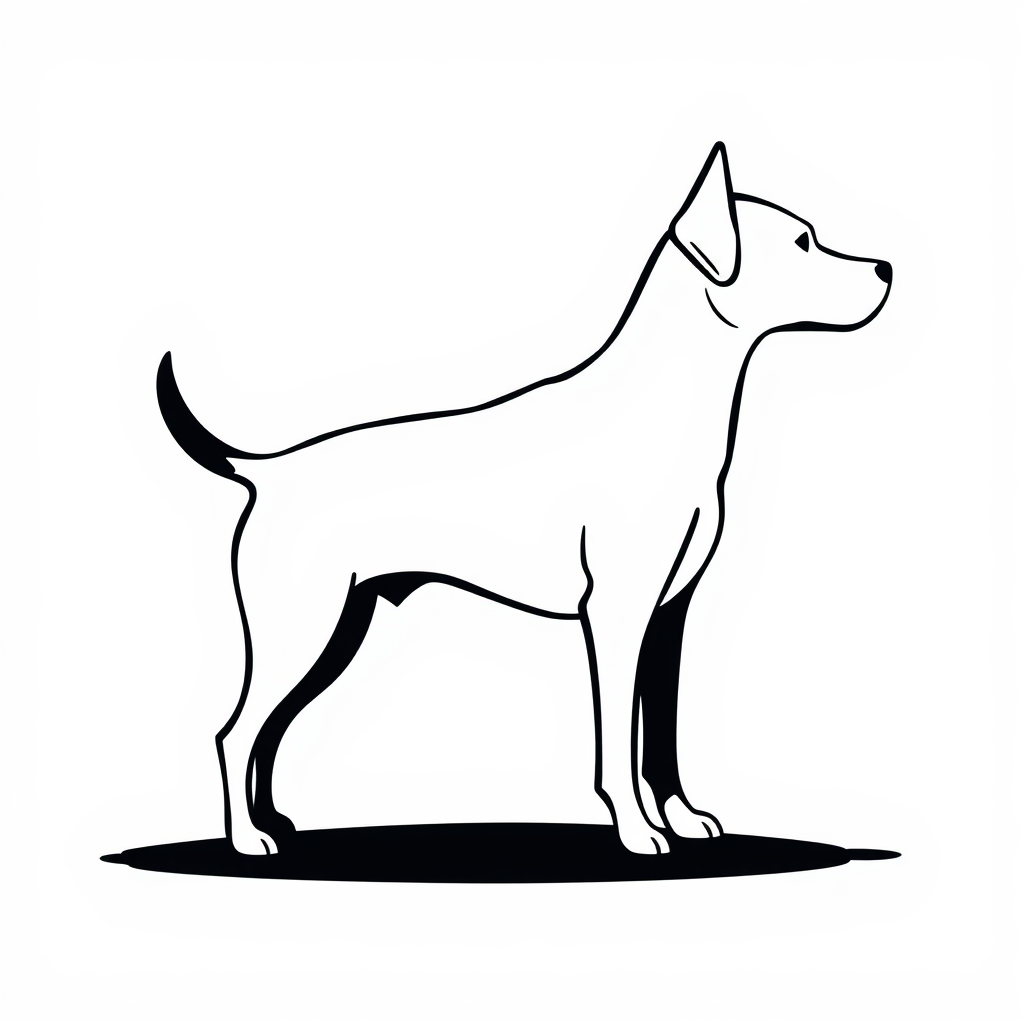 Iconic silhouette of a dog, minimalist black line art design, set against a clean white background, with subtle creative flourishes that enhance the dog's features while maintaining its timeless appeal.