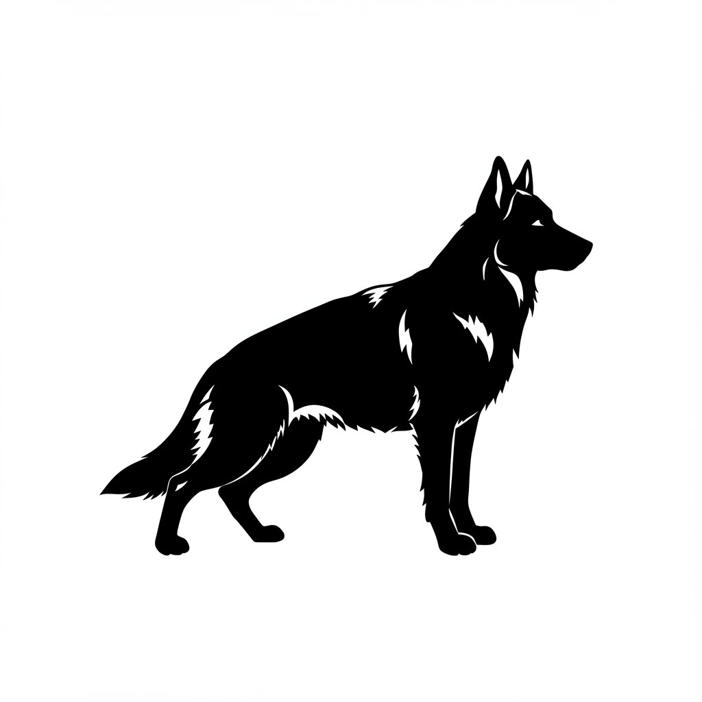 Iconic silhouette of a dog, minimalist black vector, set against a crisp white backdrop, featuring subtle artistic flourishes to enhance the classic design.