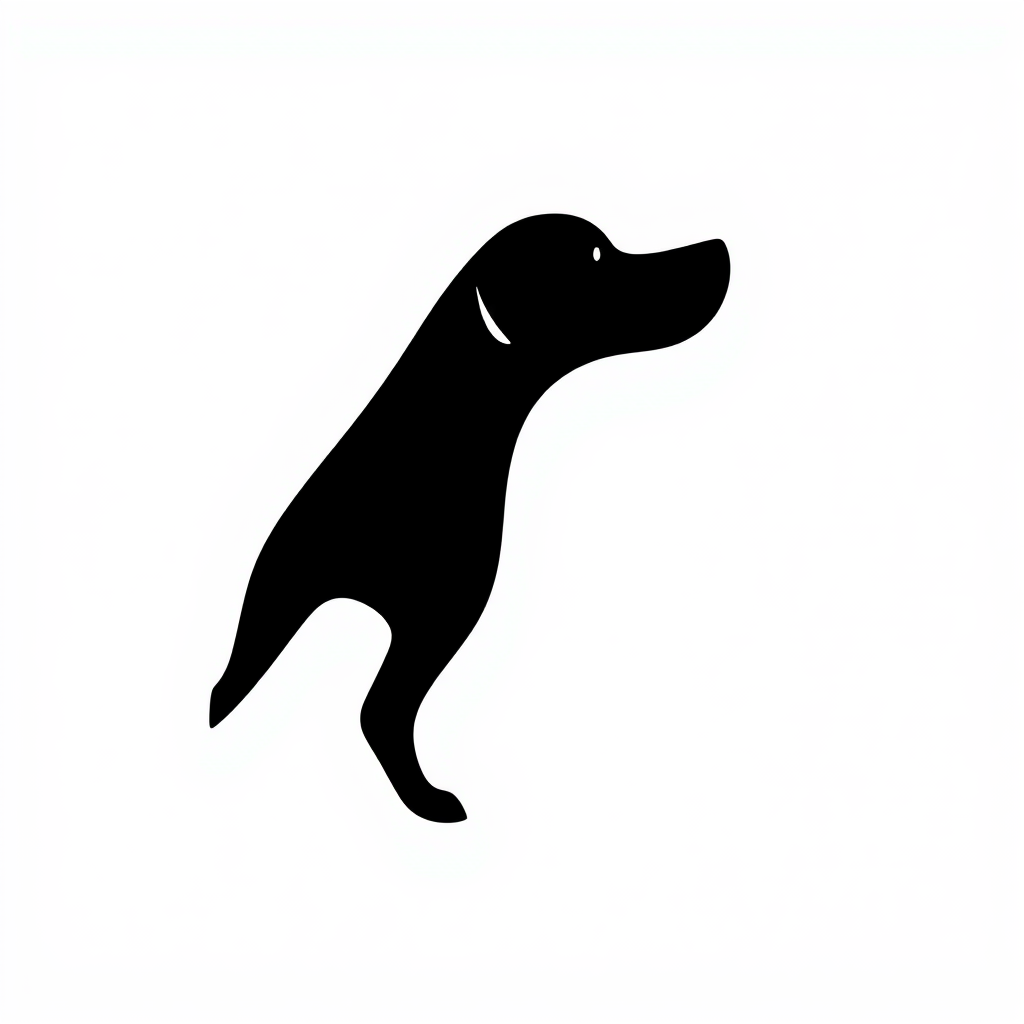 iconic silhouette of a dog, sleek black design, on a crisp white background, with subtle creative flourishes to enhance uniqueness