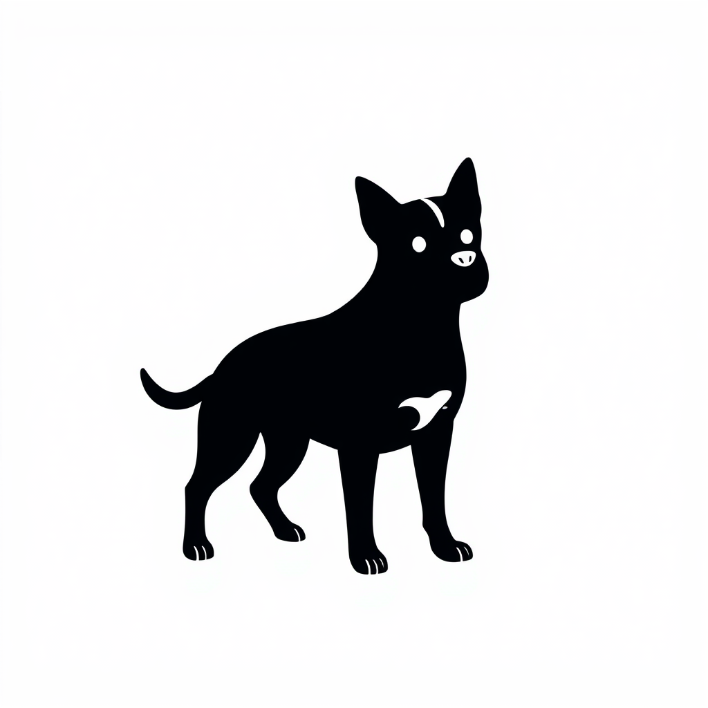 Iconic silhouette of a dog, sleek black vector style, positioned on a bright white background, incorporating subtle creative elements to enhance its distinctiveness while maintaining its core essence.