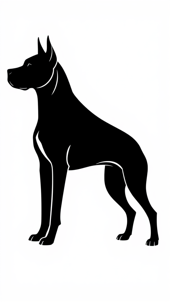 Iconic silhouette of a dog with sleek lines, minimalist black vector style, striking pose on a white background, with subtle abstract elements for a modern touch