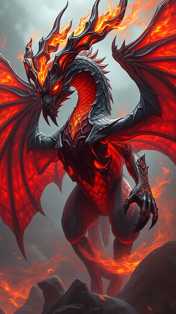 Ifrit fantasy creature in a digital painting, inspired by Final Fantasy and Dungeons & Dragons; the design is intricate and elegant, showcasing detailed textures and dynamic fire elements. The artwork embodies sharp focus and a matte style, reminiscent of concept art found on Artstation. It blends the illustrative qualities of Hearthstone with the artistic influences of Artgerm, Greg Rutkowski, and Alphonse Mucha. Rendered in 8k resolution, the scene utilizes easynegative and ng_deepnegative_v1_75t filters to enhance visual depth, with an ethereal and graceful atmosphere surrounding the majestic creature.