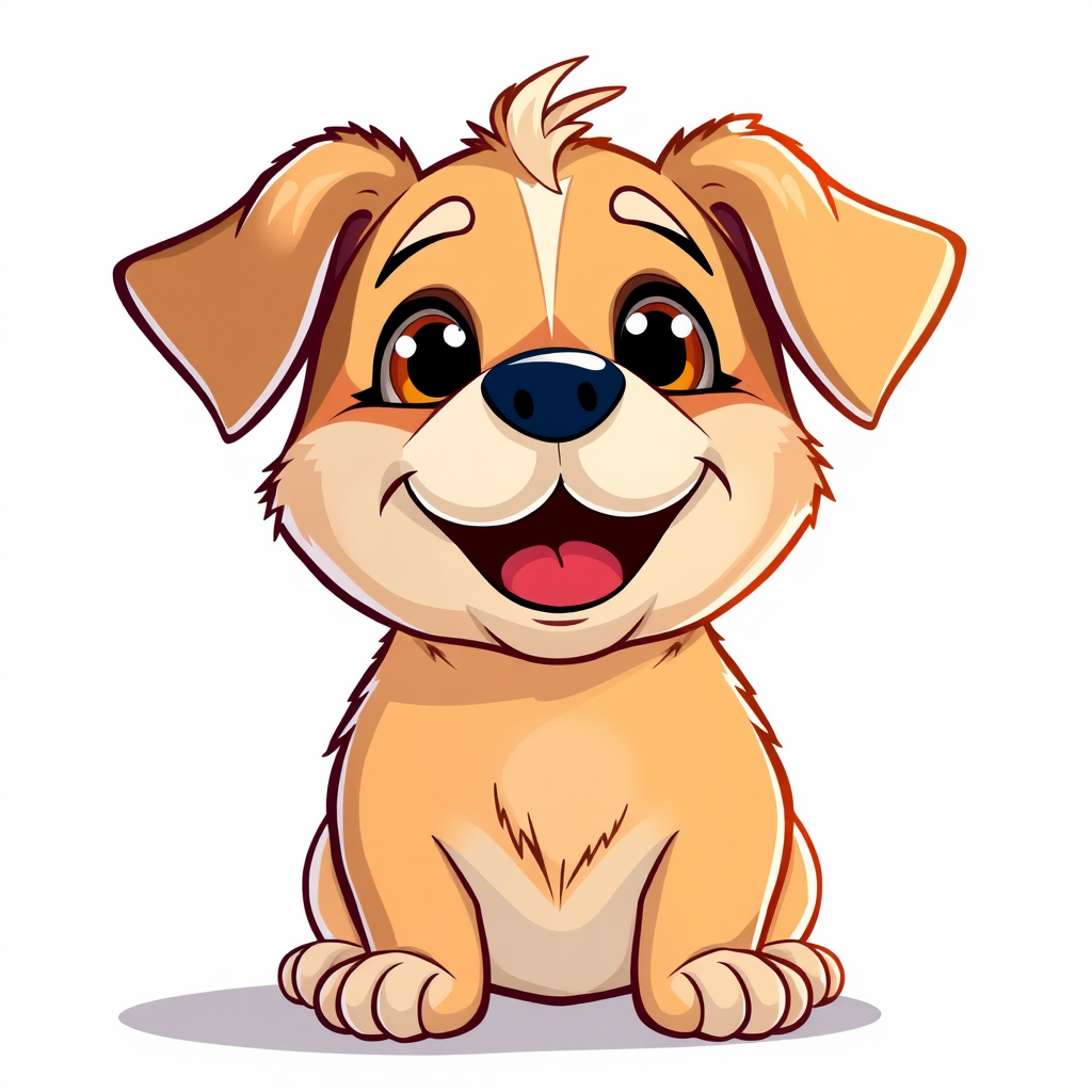 Illustrate an adorable, cartoon-style dog with a joyful expression, its eyes gleaming with excitement as it looks directly at you, bathed in vibrant colors and playful lines, capturing an essence of warmth and happiness.