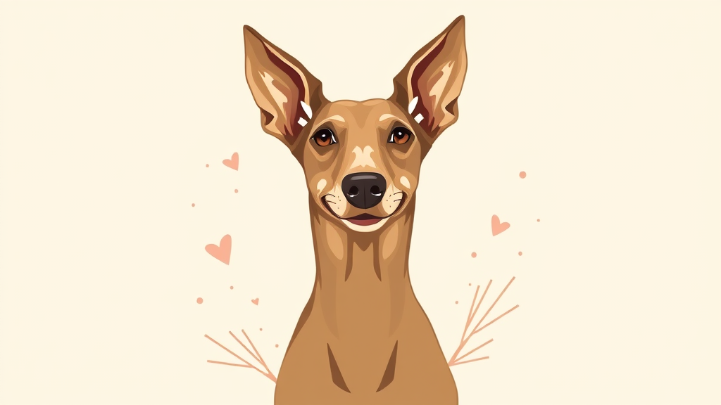 Illustration of a Portuguese Podenco dog, centered portrait showcasing its graceful features, radiating a relaxed and joyful vibe. Created with Adobe Illustrator, accentuated by a two-tone pastel background, blending soft hues seamlessly. Artistic embellishments include subtle geometric patterns and abstract shapes, enhancing the overall aesthetic while preserving the elegant symmetry and charm of the Podenco's expression.