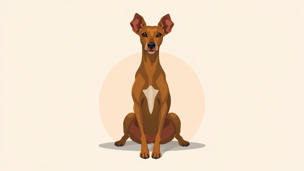 Illustration of a Portuguese Podenco dog in a symmetrical pose, exuding a relaxed and contemporary vibe. The artwork features a soft, two-tone pastel background enhancing the aesthetic appeal, created using Adobe Illustrator. Subtle creative touches include stylized fur detailing and expressive eyes that capture the dog's alert and lively nature.