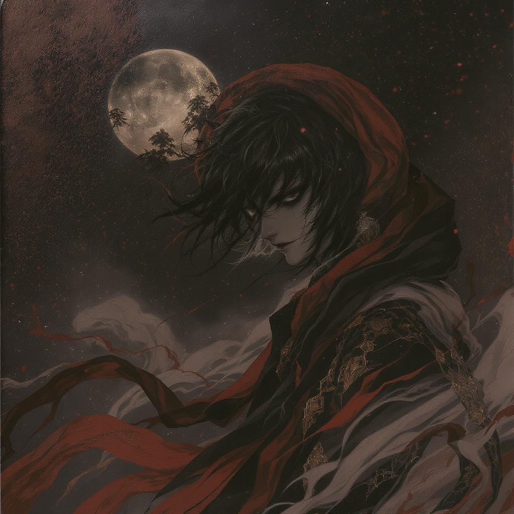 View this AI-generated image featuring a striking image features a solitary character on an enchanted island embodying the essence of kawacy s style with dark bronze and deep red hues the luminous brushwork highlights the intricacies of their expression in intense close ups capturing an ironical twi