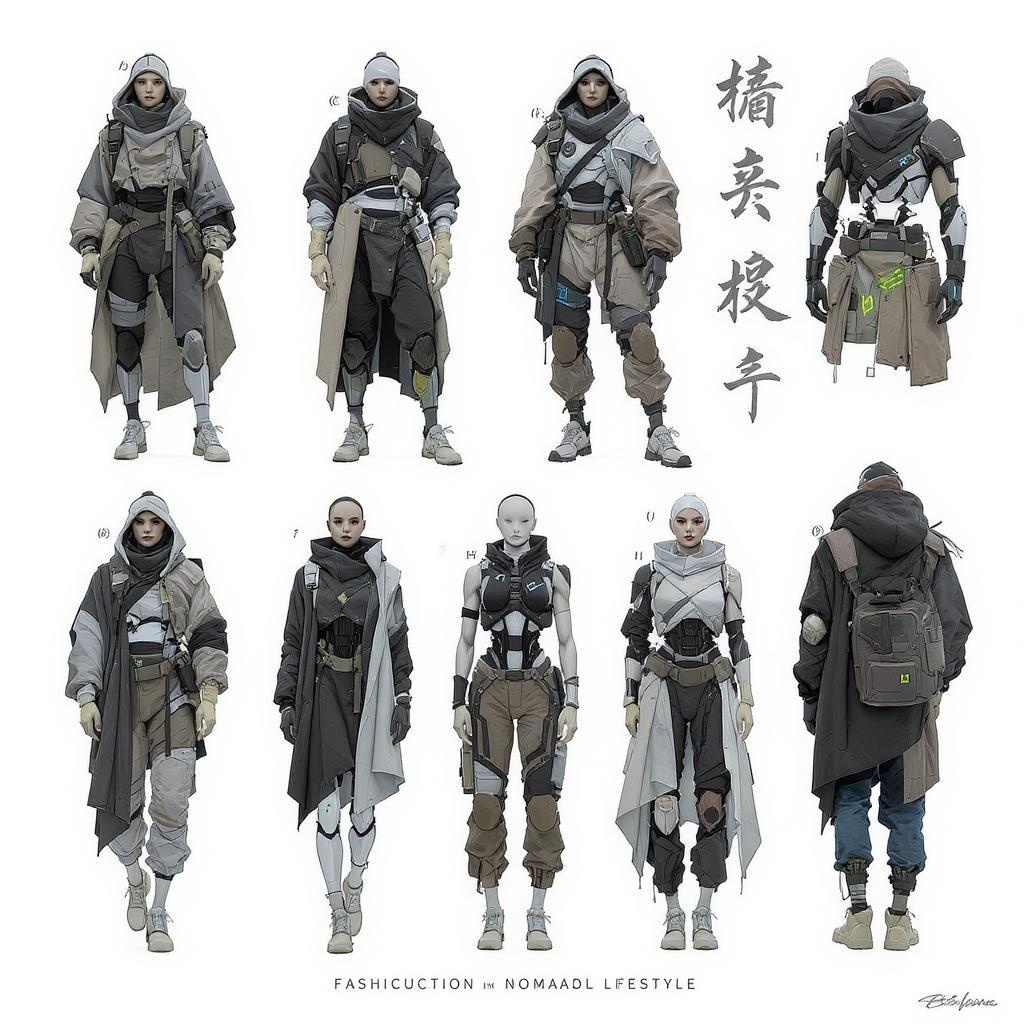Imagine a fashion line that captures the essence of a futuristic nomadic lifestyle, where sleek, avant-garde aesthetics meet the practicality of constant movement. This collection features garments crafted from advanced, sustainable materials like self-repairing fabrics and heat-regulating textiles, offering ultimate adaptability. Bold silhouettes are inspired by fluid architecture, with garments that can be easily transformed through modular components, accommodating a variety of environments. The clothing is embedded with smart technology, allowing wearers to stay connected, navigate, and monitor wellness effortlessly. This innovative fusion prioritizes functionality without compromising style, reflecting a harmonious balance between tradition and the cutting-edge, suitable for the modern nomad thriving in a high-tech world.