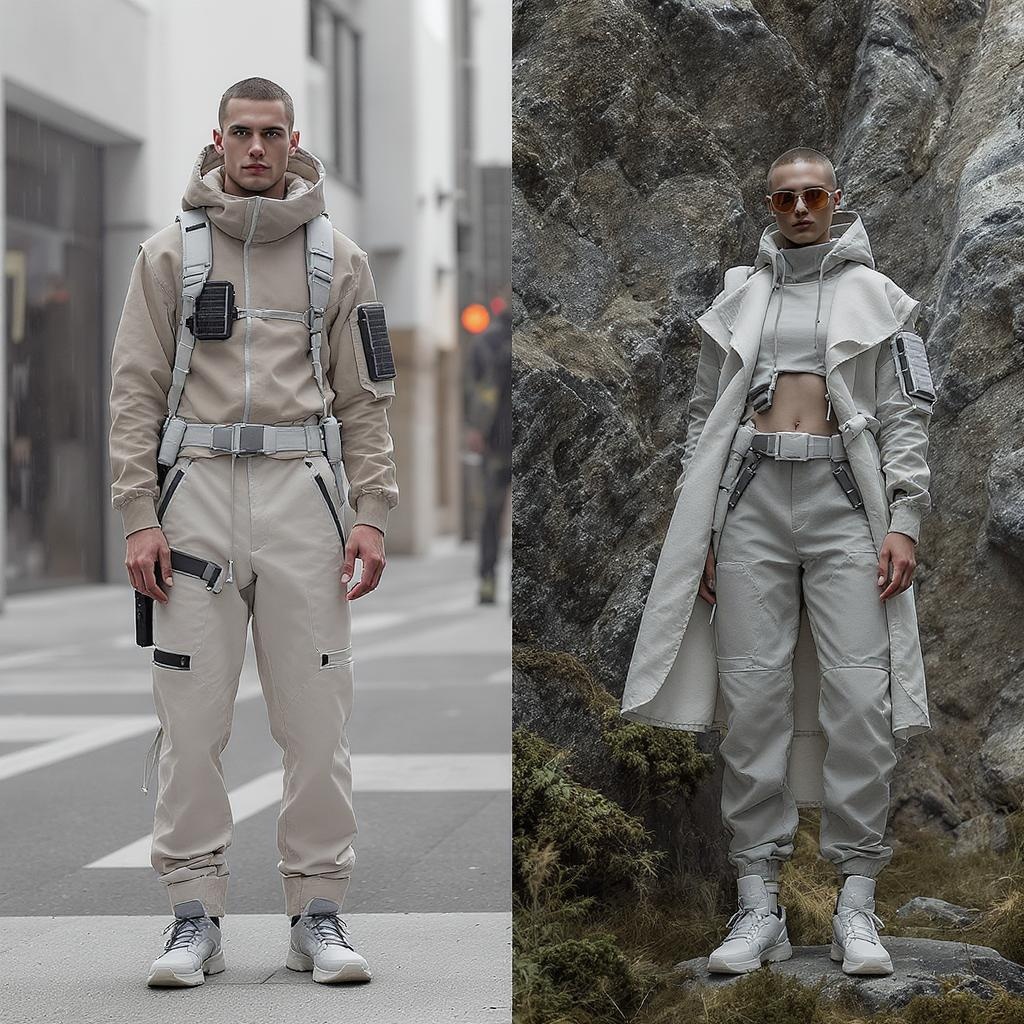 Imagine a fashion line where the future meets the nomadic spirit, resulting in garments that combine cutting-edge style with practicality. This collection introduces pieces that effortlessly integrate form with function, designed for a world where technology enhances mobility. Utilizing advanced materials such as self-healing fabrics and adaptive textiles, the clothing ensures durability and comfort in any environment. The silhouettes are striking yet versatile, featuring transformable designs that can be easily adjusted to suit different weather conditions and activities. Each piece in the collection boasts innovative features, like integrated solar panels for charging devices and modular components that allow for personalized customization. This fashion line embodies a lifestyle that embraces the freedom of movement, adapting to both urban and natural landscapes, while maintaining a distinct, futuristic aesthetic that speaks to the essence of the modern nomad.