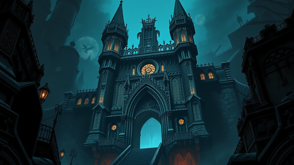 Impressive perspective of a Gothic Hellgate Tower, enveloped in dim, infernal ambiance of the underworld, a masterpiece of shadows and intricate details. Crafted with expert precision and stunning 32k resolution, this artwork evokes the styles of Tom Bagshaw, Antonio Manzanedo, Artgerm, James Jean, Brian Froud, Ross Tran, and DnD art. With crystal clarity, the scene unfolds in highly realistic 4 HD, capturing every nuance of the fantastical structure and its ominous surroundings, drawing in the viewer with its mesmerizing depth and detail.